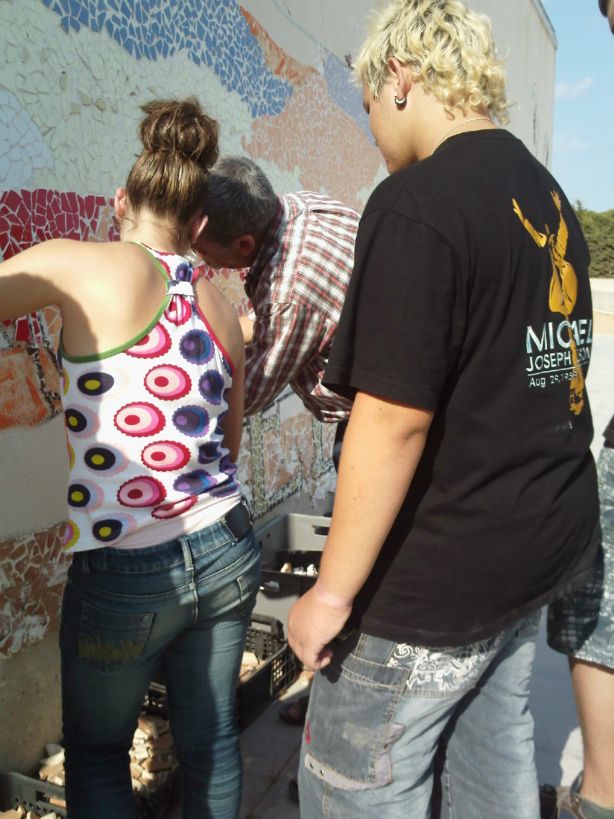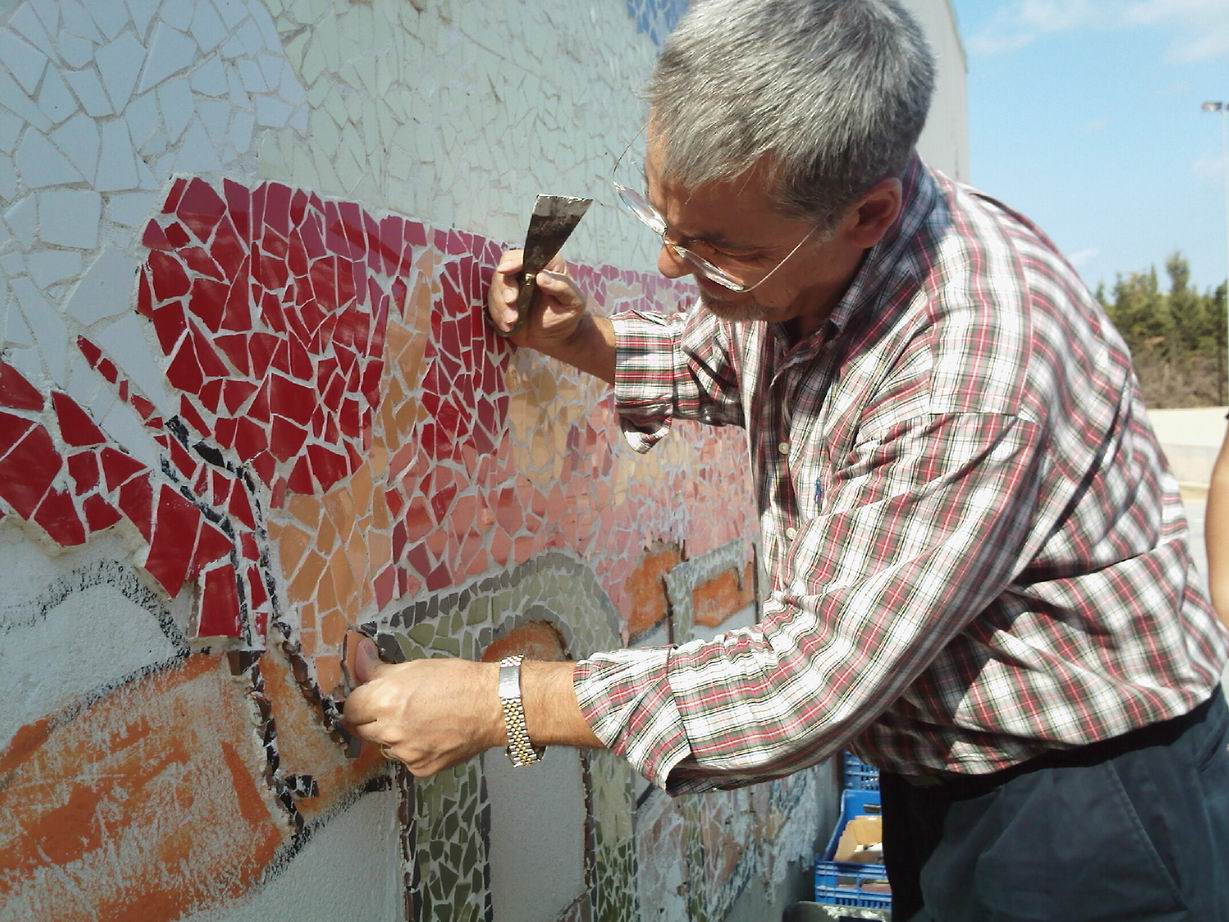 El nostre professor Manel Marqués ens ensenyava a fe el trencadís de mosaic del Delta.