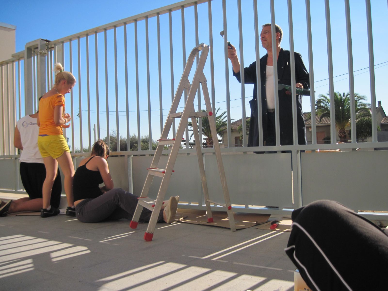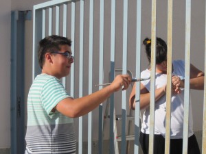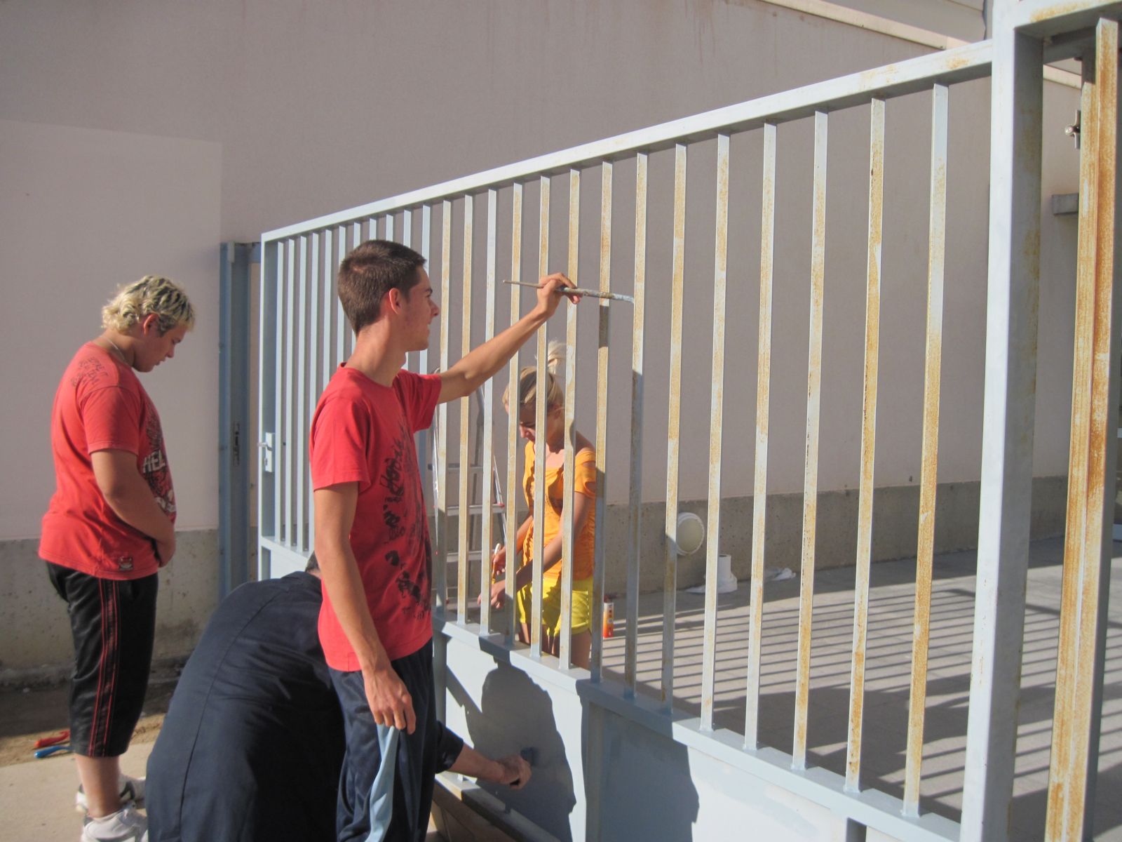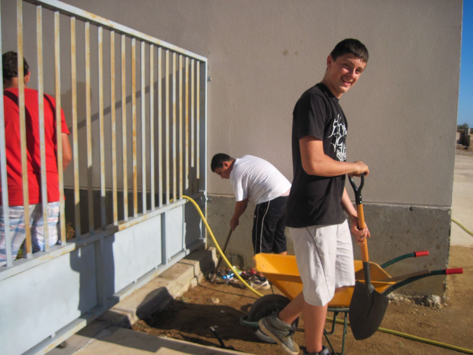 Mentres el altres pintàvem la porta de l’entrada, els altres Bartosz i Dani Garcia  estaven recollint la basura, i el Daniel Vasile està regant les plantes.