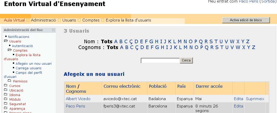 Agrair a Albert la seua ajuda i els seus ànims, ja que en un principi, no sabia si fer Moodle per la seua envergadura, però ara li agraïsc que em donara una xicoteta espenta