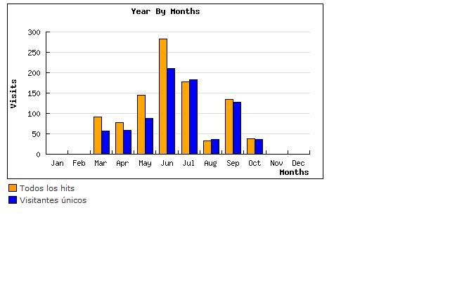 Actualització del comptador de visites Publicat el 14 octubre 2009 per a8053030 Després de portar 1 any funcionant, el bloc, em decidit tornar a 0 el comptador de visites. Esperem que ens ajudeu a augmentar-les novament fins on estàvem o fins i tot més. A continuació teniu les estadístiques de visites per mesos: