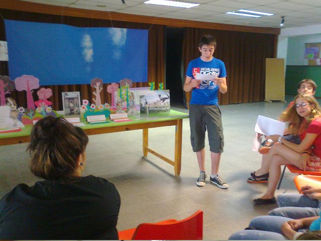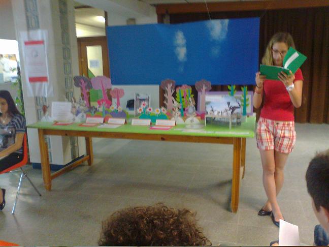 La hemos titulado El mirador: Encuentros con la lectura y la escritura, y recoge el trabajo realizado. La inauguramos en el vestíbulo de nuestro instituto y más tarde la llevamos a la Biblioteca Municipal de la Roca, donde realizamos una sesión de presentación ante el público visitante.