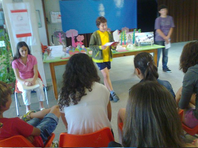 Laura ha entrado desde su habitación, una tarde de sábado a través de unas gotas de agua. Marc cuando iba caminando por la calle y de pronto un ruido muy extraño y unas voces y una luz cegadora lo arrastraron. Joel entró al meterse en un laberinto de su ciudad en donde encontró tres puertas misteriosas. Oriol vio cómo su lápiz daba una voltereta… las letras de un papel escrito formaron una espiral y cayó, cayó, cayó… Joán vivió una tormenta de ranas, un croar, croer, crour que le transportó a un ¡mundo verde! Os dejamos su fragmento: