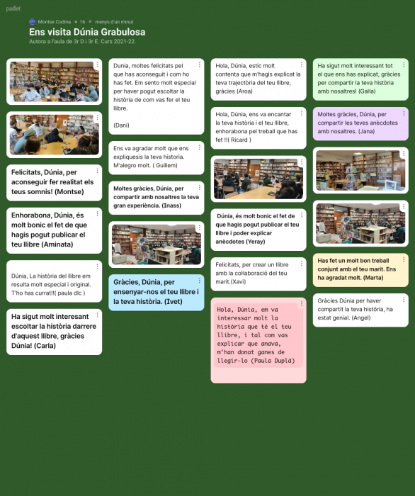 Dúnia Grabulosa visita les classes de 3r d’ESO Dijous passat Dúnia Grabulosa va començar la ronda de visites a les aules de 3r, que tindran continuïtat el tercer trimestre. De moment, la impressió que els va causar va ser molt favorable. Us ho mostrem amb un pòster que recull frases seves.
