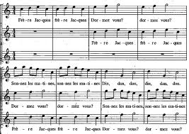 Aquí tens un cànon, una de les formes més importants del contrapunt, d’una cançó que segur que coneixes “Frère Jacques”. Amb l’ajut de la professora ressegueix amb colors les diferents veus del cànon. Veus la diferència amb l’homofonia?