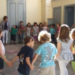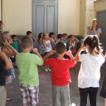 She also taught them the dance “Here we go round the mulberry bush”.