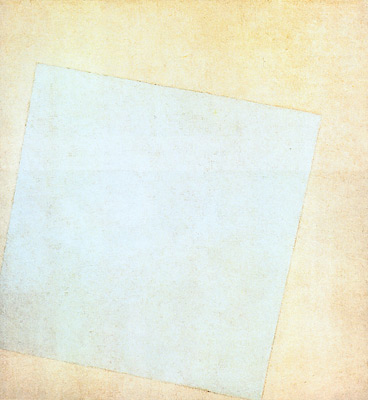 Distribuir colors en l’espai fins conèixer el color de les nostres idees, fins poder canviar el tint profund del pensament. Cada color reproduient.se ell mateix, destruint la barrera de protecció que li atorgava el seu únic nom. El blanc que busca distingir-se del blanc mateix necessita la complicitat de la línia, de la forma que l’enquadra, engendrant la seva singularitat, la seva diferència. Blanc sobre blanc? Com es pot distingir una cosa d’ella mateixa? Blanc sobre blanc és el títol de l’obra. A Malevich li falten colors o li falten paraules? La forma surt en defensa del color. Potser finalment la pintura no està tan lluny de l’escultura!
