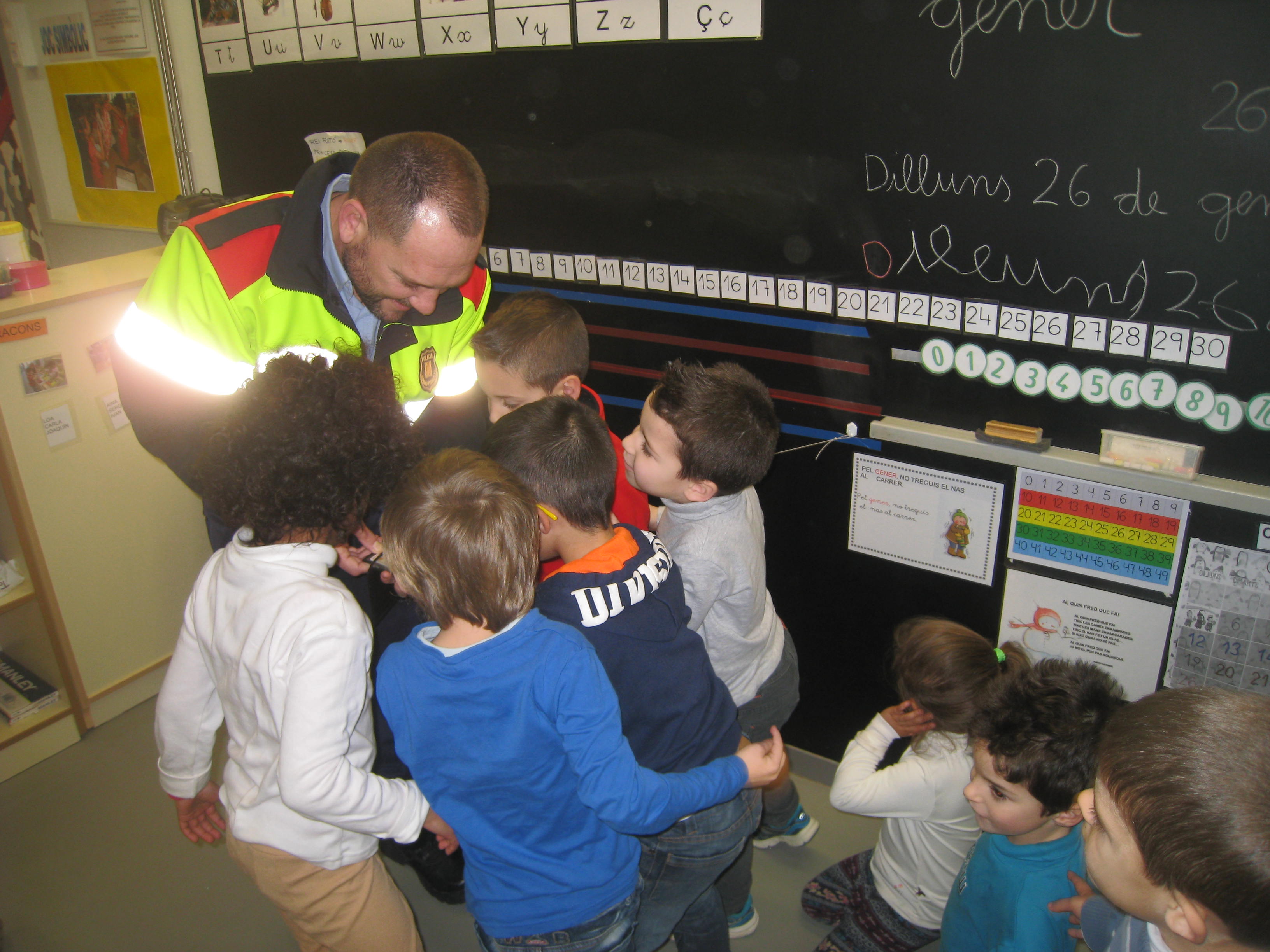 El papa de l’Eva que treballa de Mosso d’Esquadra ens ha vingut a explicar la seva feina. Ens ha ensenyat com va vestit per treballar i quines coses fa servir I també ens ha explicat moltes coses de la feina de policia. Ens ho hem passat molt bé! Gràcies Fede!