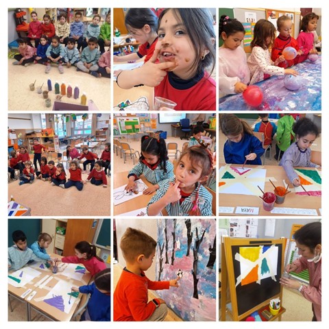 P5, PLÀSTICA Publicat el 3 maig 2022 per infantilmdr Respon Ens ho passem bé a les sessions de plàstica. Som creatius. Fem murals, pintem amb xocolata, amb globus i pintura, amb ceres, utilitzem noves tècniques i nous materials: