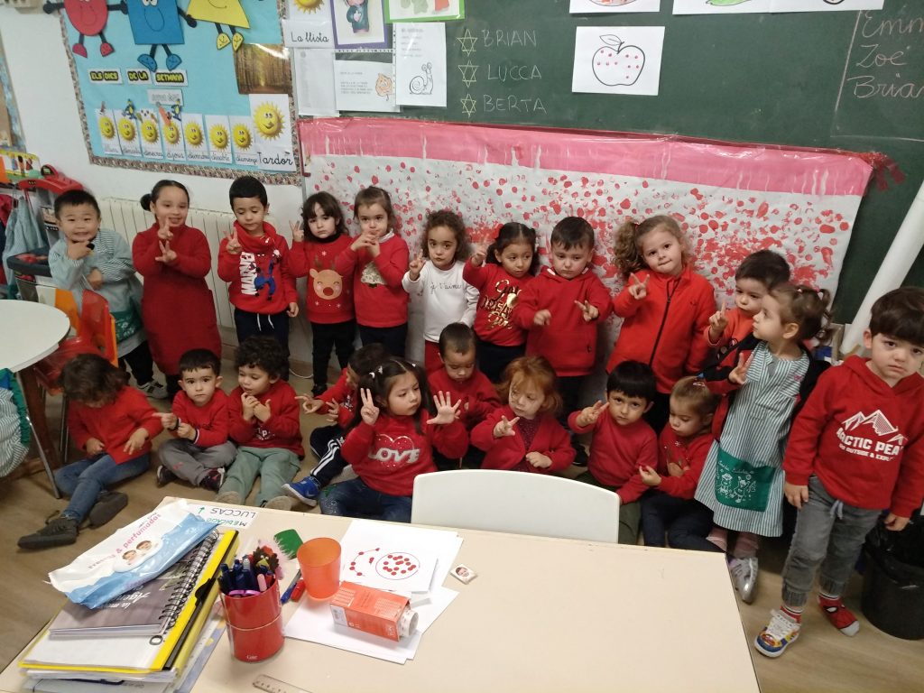 Durant la setmana passada a la classe dels Sols, Solets, han dut a terme diverses activitats i propostes entorn del color vermell, jocs, tallers, activitats, cançons, etc. I per últim el divendres van fer la festa del color vermell!!. Una superfesta on tots els nens i nenes van venir amb una peça de roba de color vermell.