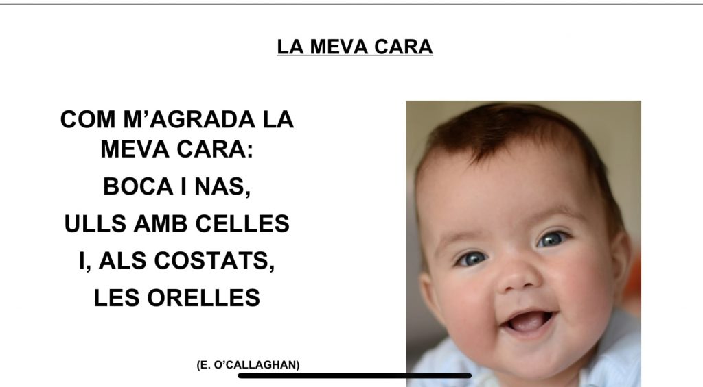El grup d’ I3 s’inicia a les estones de Filosofia. S’introdueix el tema sobre la cara per: adquirir consciència de com som i conèixer-nos una mica més, per tal d’iniciar-se en la creació del propi autoconcepte, el treball de l’esquema corporal, l’acceptació de les pròpies característiques i les dels altres, pel respecte envers la diferència. Aprenem aquest poema.