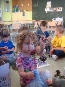 -Observar, classificar, comparar, tocar… gruits del bosc (glans, castanyes…), fules, pinyes, etc.