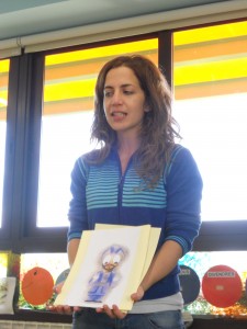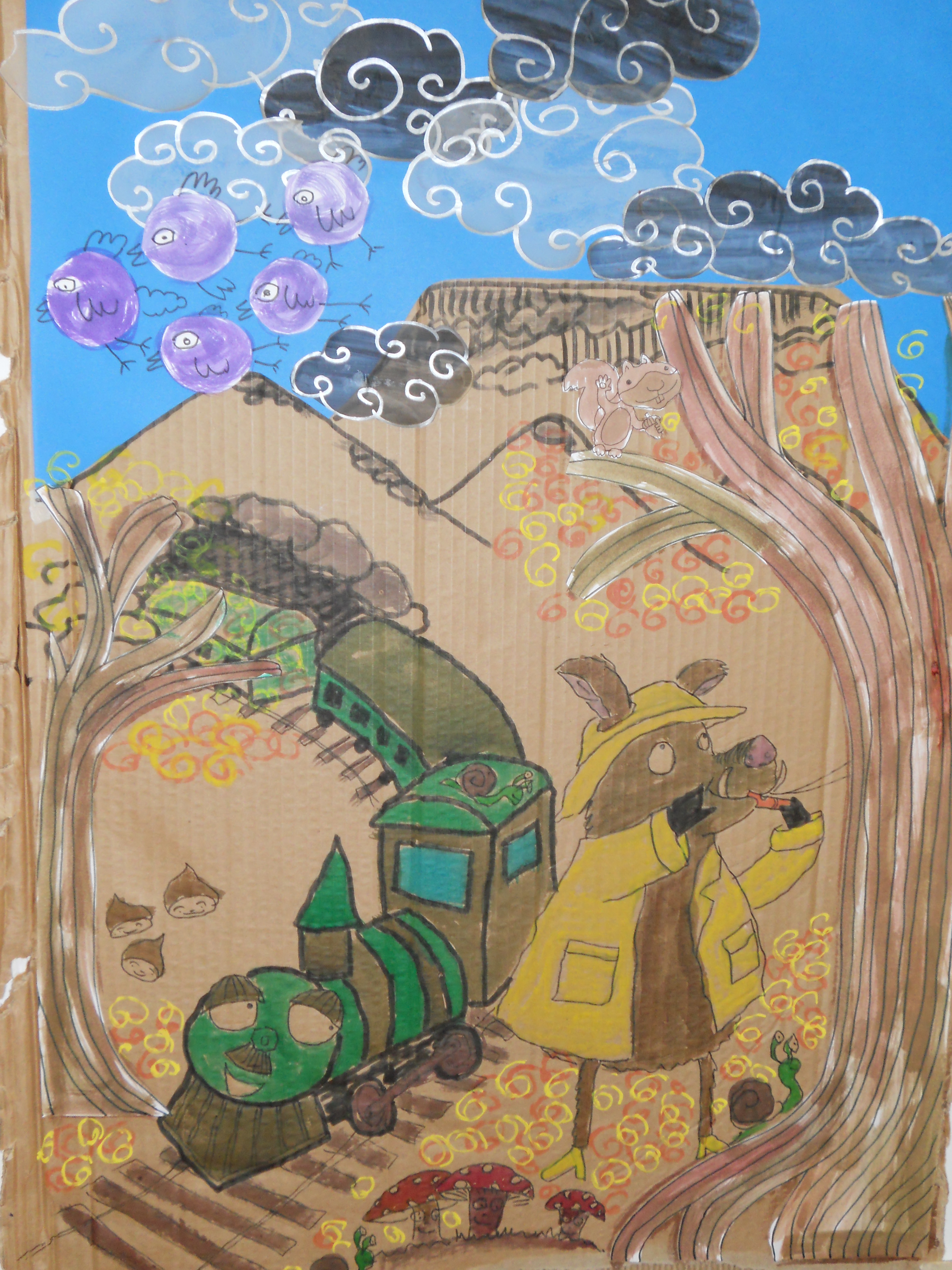Aquesta tarda la Violeta i la Noe, que són les mares de la Zoe i del Nin, ens han explicat el conte “En Tomeu i la Griselda a l’estació de la tardor”. Mentres la Violeta ens explicava les aventures del tren Tomeu i de la senglar Griselda, la Noe ho anava dibuixant. Quina parella d’artistes!