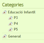 Tot i això, per veure només les notícies d’un grup concret heu de dirigir-vos a l’apartat categories situat a la columna de la dreta i clicar sobre el curs. Per exemple, si sou familiars d’un infant de P4, doncs heu de clicar sobre P4 i es visualitzaran les actualitzacions d’aquest curs.
