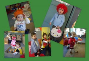 Aquesta setmana hem posat davant del mirall un raconet amb disfresses, barrets, perruques… als nens i nenes els ha entusiasmat. Es posen els barrets i les perruques tots sols i es pengen del braç les bosses, ,  i apa a donar el vol per la classe!!