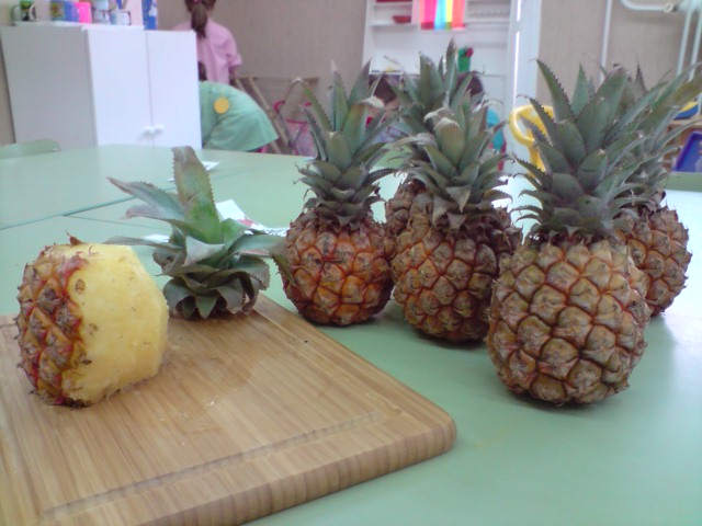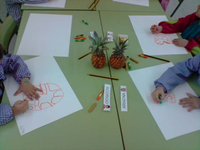 EN AQUESTA OCASIÓ VOLÍEM DIBUIXAR DE LA MANERA MÉS REAL POSSIBLE UNA FRUITA: LA PINYA.