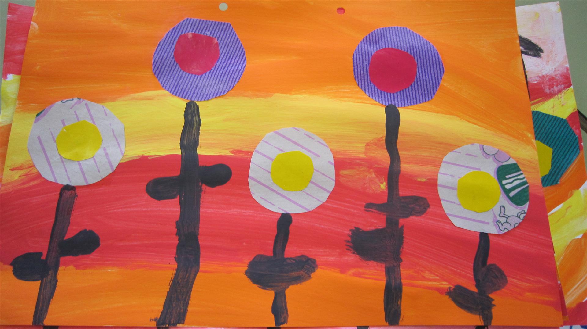 MATERIALS : Full fotocopiat amb flors que ells pinten com volen, retalls de paper de revista per fer el test, témpera negra per les tijes, tisores, cola… i aquí el resultat .Feu clic a la foto: