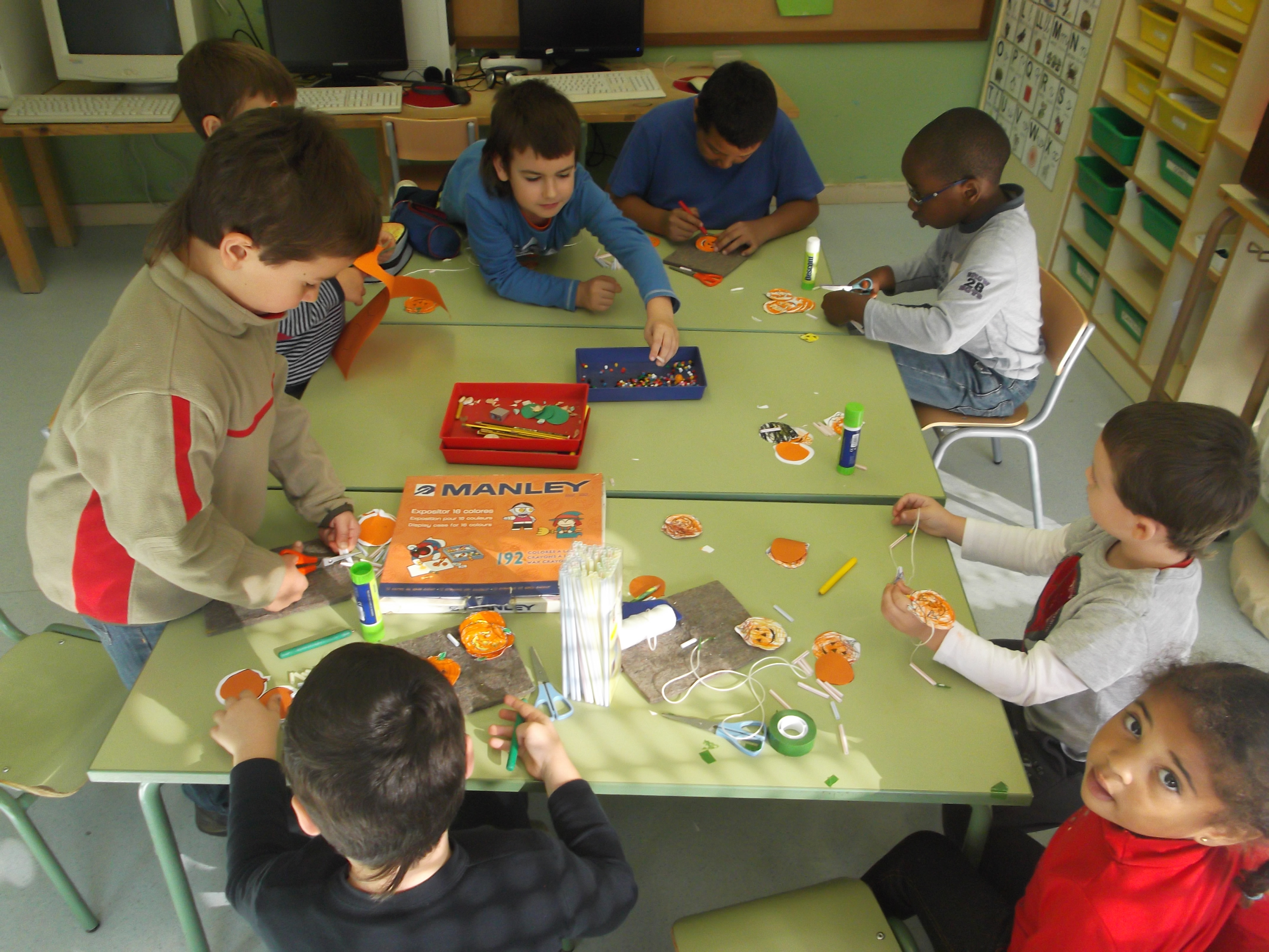 Look at us making pumpkin necklaces for “La Castanyada”!!!