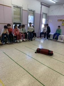 Durant la sessió, en Josep ens va explicar les normes bàsiques dels vianants i ens va mostrar alguns dels estris més importants que fa servir en la seva professió, com, per exemple, el “walkie-talkie”. Però el més divertit va ser la petita representació teatral que ens va preparar, on els nens i nenes van poder participar activament representant situacions del dia a dia al carrer com, per exemple, com actuar en cas que ens perdem.