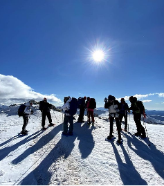 Segon dia de ruta en direcció al Refugi dels Estanys de la pera. Pic de la Colilla 2.837m al sac amb cel radiant. Finalitzem jornada amb taller de sondes i iglús.