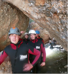 19/05/21. Tercer dia del Crèdit de Síntesi del CFGM. Matí al barranc del Canaletes i a la tarda transfer Arnes – Estació de Benifallet (38km) en BTT amb recerca de geoamagatalls i banyada a la Fontcalda. Gaudint a tope!!
