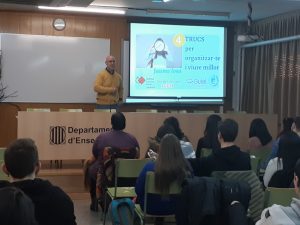 Pel que fa als alumnes de CAI, van assistir a un taller pràctic de mobilitzacions passives a càrrec de Jonatan Fuentes, fisioterapeuta i traumatòleg. A partir de situacions o preguntes que feien els alumnes, en Jonatan va explicar i mostrar estiraments, mobilitzacions o massatges que podien practicar, tot i fent referència a l’anatomia i explicant-ne l’objectiu. Així, els alumnes van poder practicar les tècniques mostrades amb la supervisió i correccions del Jonatan, d’una manera molt amena i entretinguda.