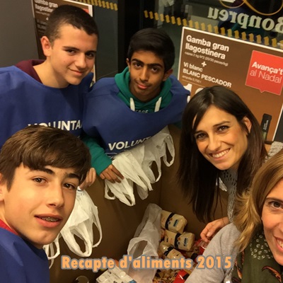 0El passat dissabte dia 28 de novembre, alguns alumnes de 3r curs de l’ESO i les professores MªJosé F. i Anna Bernat van fer una jornada maratoniana de recollida d’aliments a un supermercat del barri. Concretament van recollir aliments durant 10 hores i el resultat va ser de fer quasi 4 megacapses d’aliments. Enohorabona a tots els participants.