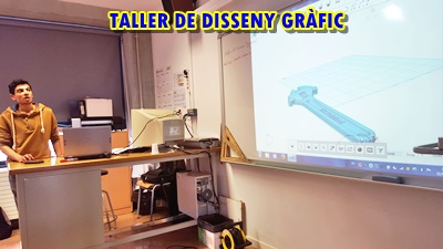 Aquest taller va ser dirigit a l’alumnat que realitza la matèria de modalitat de 1r de Batxillerat de Dibuix Tècnic i l’optativa d’Autocad de 4t d’ESO.En aquest taller es varen mostrar diferents programes de disseny gràfic i es varen realitzar pràctiques amb el programa Blender, d’elaboració de diverses figures, per una posterior impressió en 3D. També es va realitzar l’escannejat d’un alumne, voluntari, per veure les possibilitats d’impressió de qualsevol figura i introducció d’aquest escannejat com a element d’un video joc.