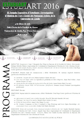 0Dijous 4 de febrer de 2016, alguns alumnes del nostre institut van assistir a la III Jornada Expositiva d’Estudiants i Investigadors d’Història de l’Art i Gestió del Patrimoni Artístic de la Universitat de Lleida.