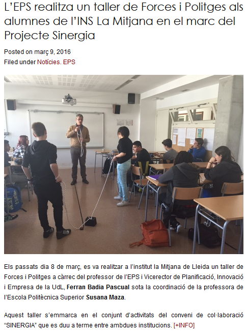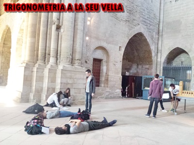 0El passat dimarts 8 de març vam fer la sortida a la Seu Vella amb els alumnes de 4t d’ESO. Allà vam poder fer mesures inaccessibles i obtenir resultats molt aproximats als reals.