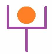 Al següent dibuix es veu una pala de color lila amb una bola taronja a dintre.
