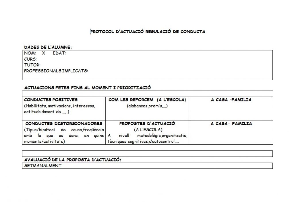 - Establir un Pla de Treball conjuntament on l’alumna es trobi partícip actiu de la seva millora.