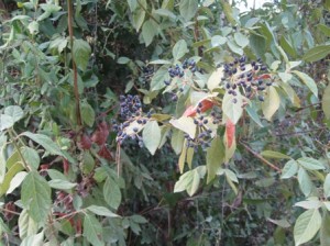 Par des touffes de marguerites et de laurier-tin. (marfull).