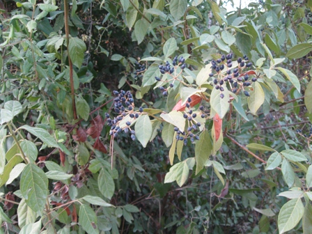 Par des touffes de marguerites et de laurier-tin. (marfull).