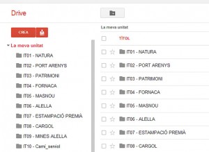 - Aplicació Google Docs (Drive): organitzada en carpetes referides a cada un dels itineraris (fig. 2)