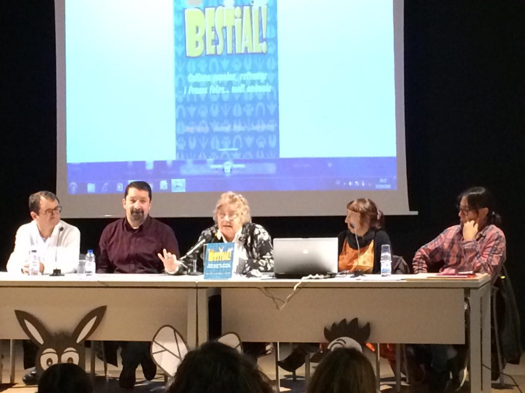 El darrer 23 de novembre vam presentar a l’espai Betúlia amb col·laboració amb Saltamartí llibres, el llibre Bestial! Va ser tot un privilegi fer-ho en aquest espai tan preparat. La Teresa Casals ens va fer una brillant presentació i després vam jugar amb els assistents a algunes activitats lingüístiques que apareixen en el llibre. Mil gràcies a tothom que ha assistit i participat per aquest dia tan intens i emotiu!