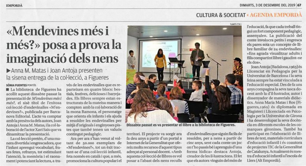 El passat dissabte 30 de novembre vam presentar a la biblioteca de Figueres el darrer volum (sisè) de la col·lecció M’endevines: “M’endevines més i més?”.