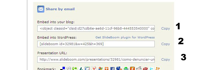 6. Finalment enganxar el codi embed (1) on posa: modifica l’HTML, el (3) a dalt on ens demana l’adreça URL (http) i en el cas de tenir un bloc de Word Press s’ha de fer servir el codi 2: