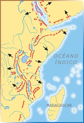 Es tracta d’un marge divergent. Fa 8 milions d’anys Àfrica es va començar a trencar en dues parts desiguals. Aquest canvi del relleu va modificar el clima de l’Àfrica oriental i va convertir la selva en sabana.