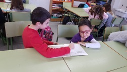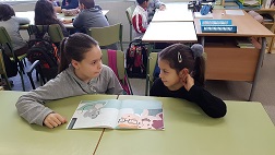 Els alumnes de 5è som padrins lectors del companys de 1r. Els ajudem a llegir i fent una estona de lectura i així fem un vincle d’amistat entre alumnes de diferents edats.