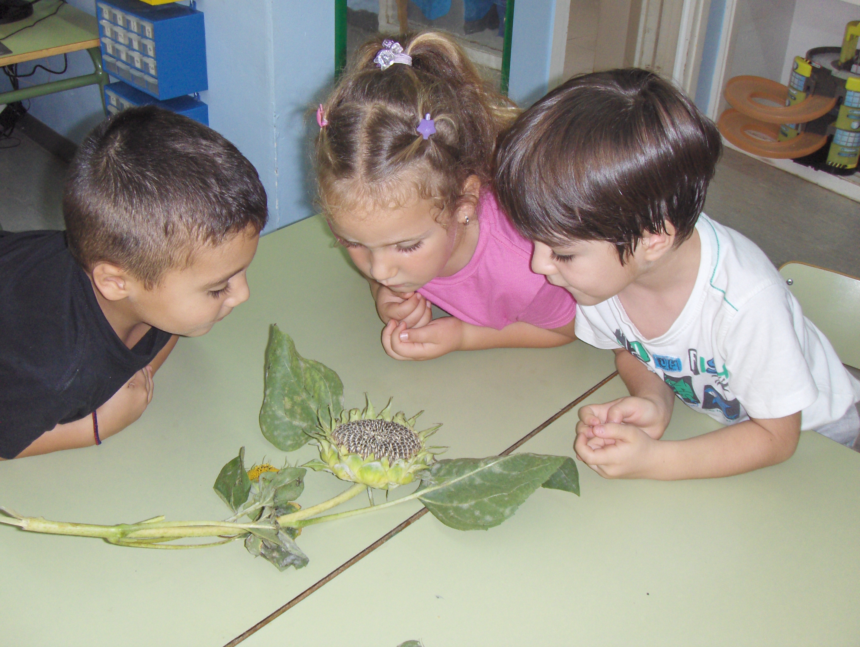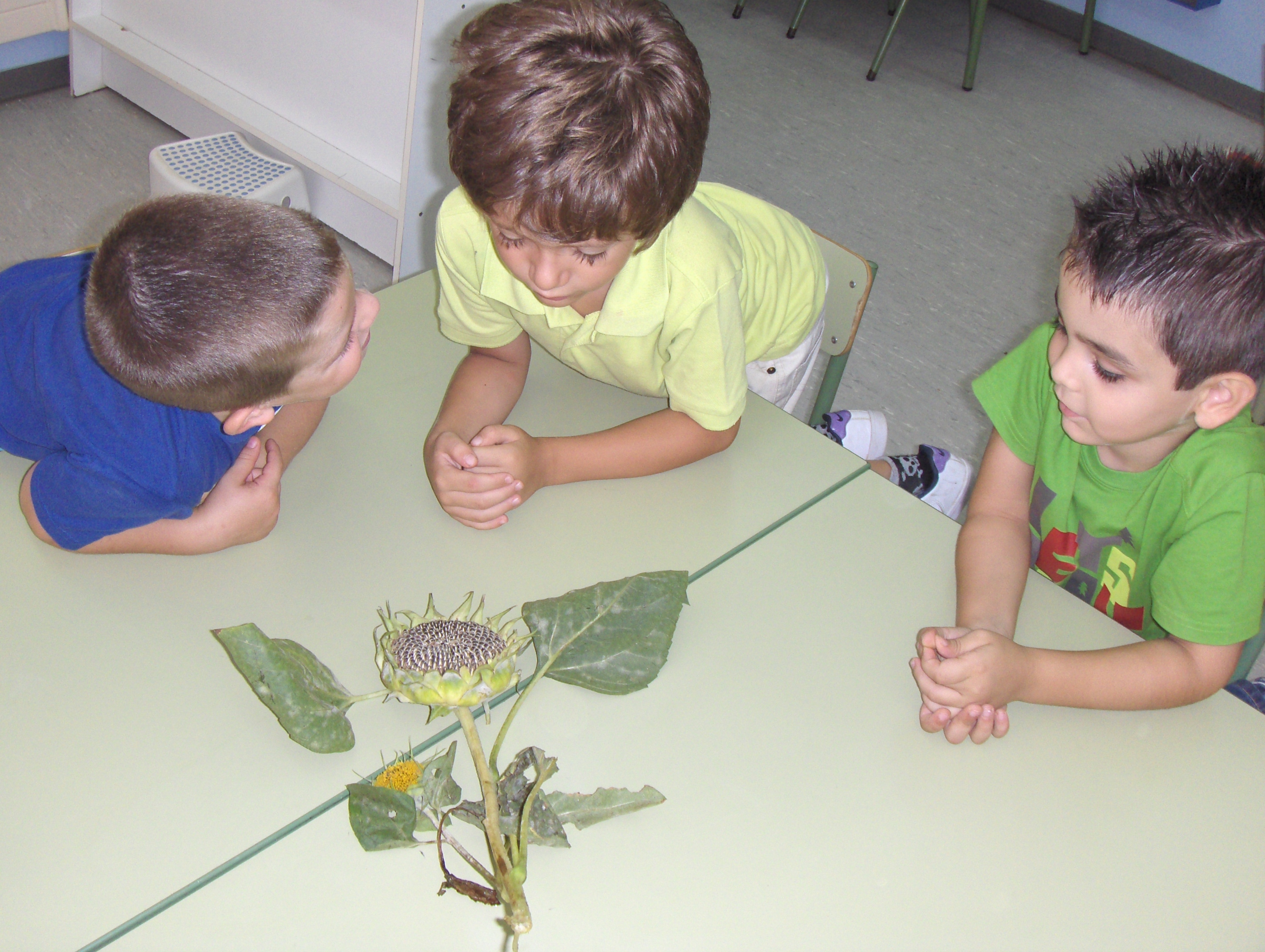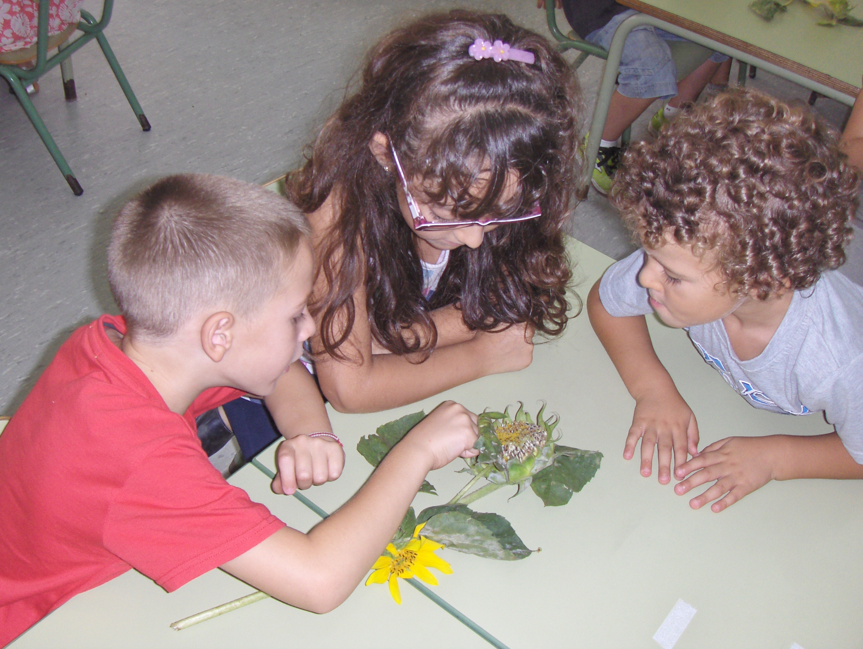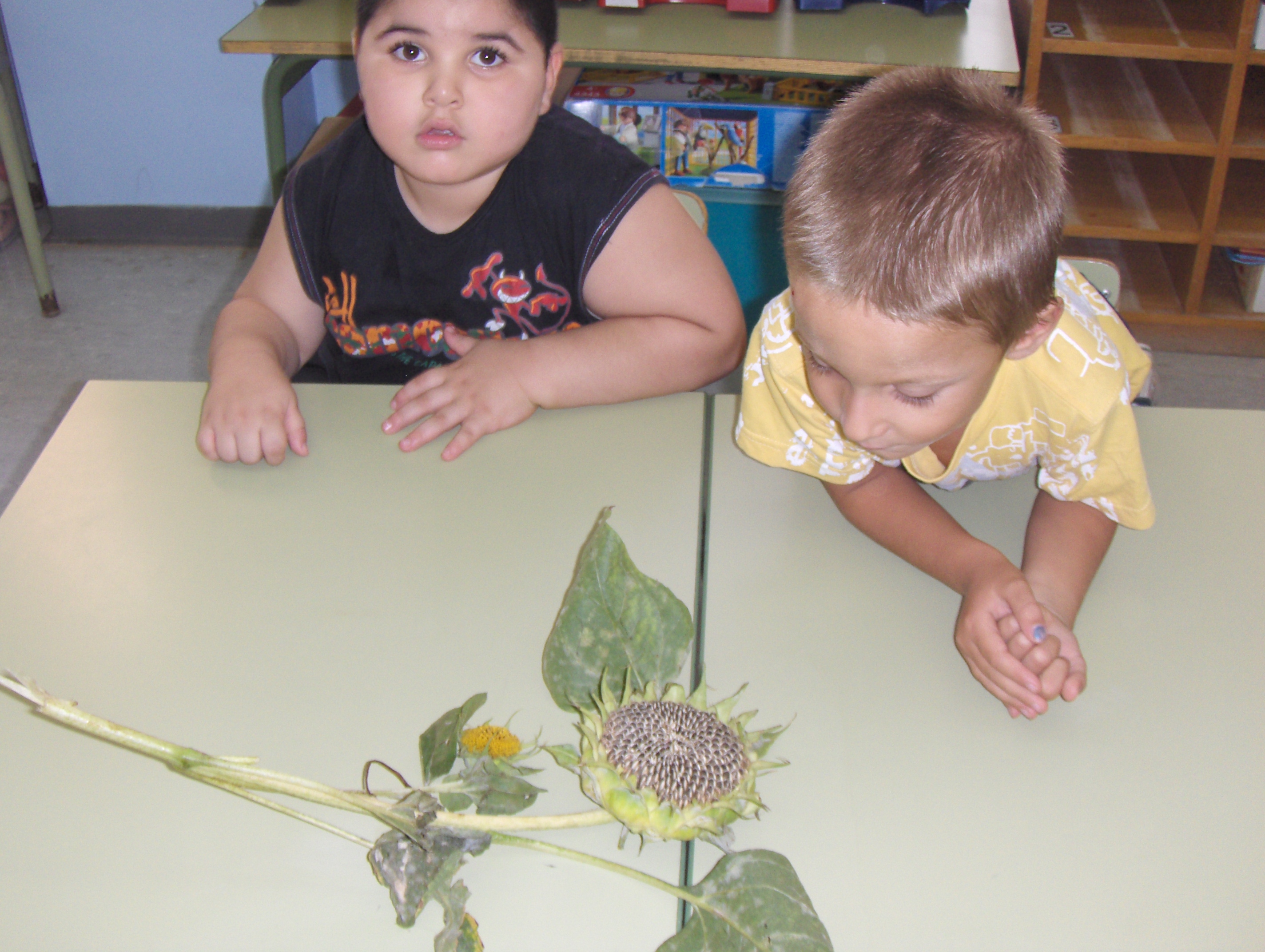 Ens han portat a la classe un girasols d’un hort i els hem observat, els hem tocat, olorat i…