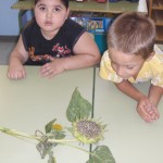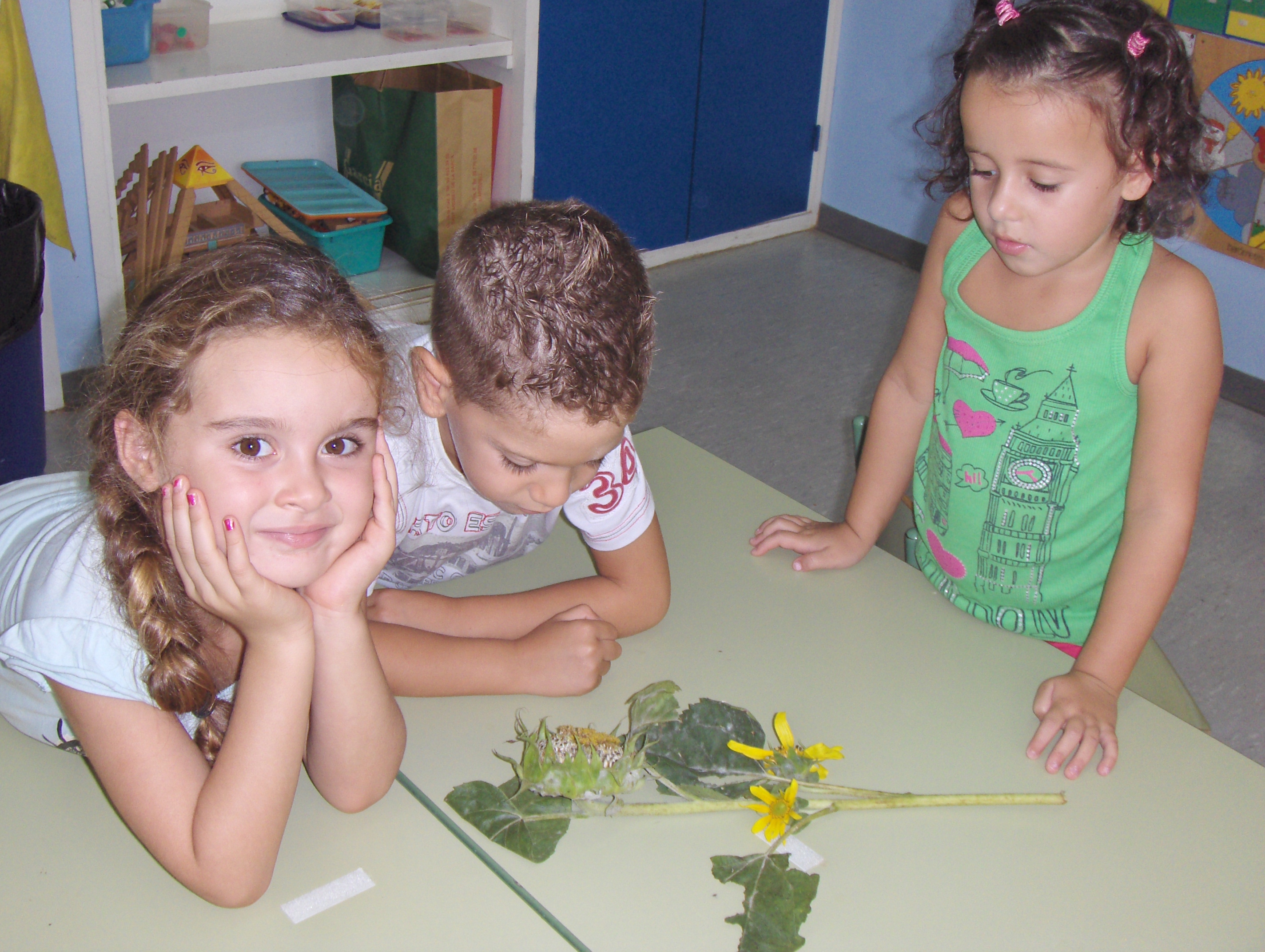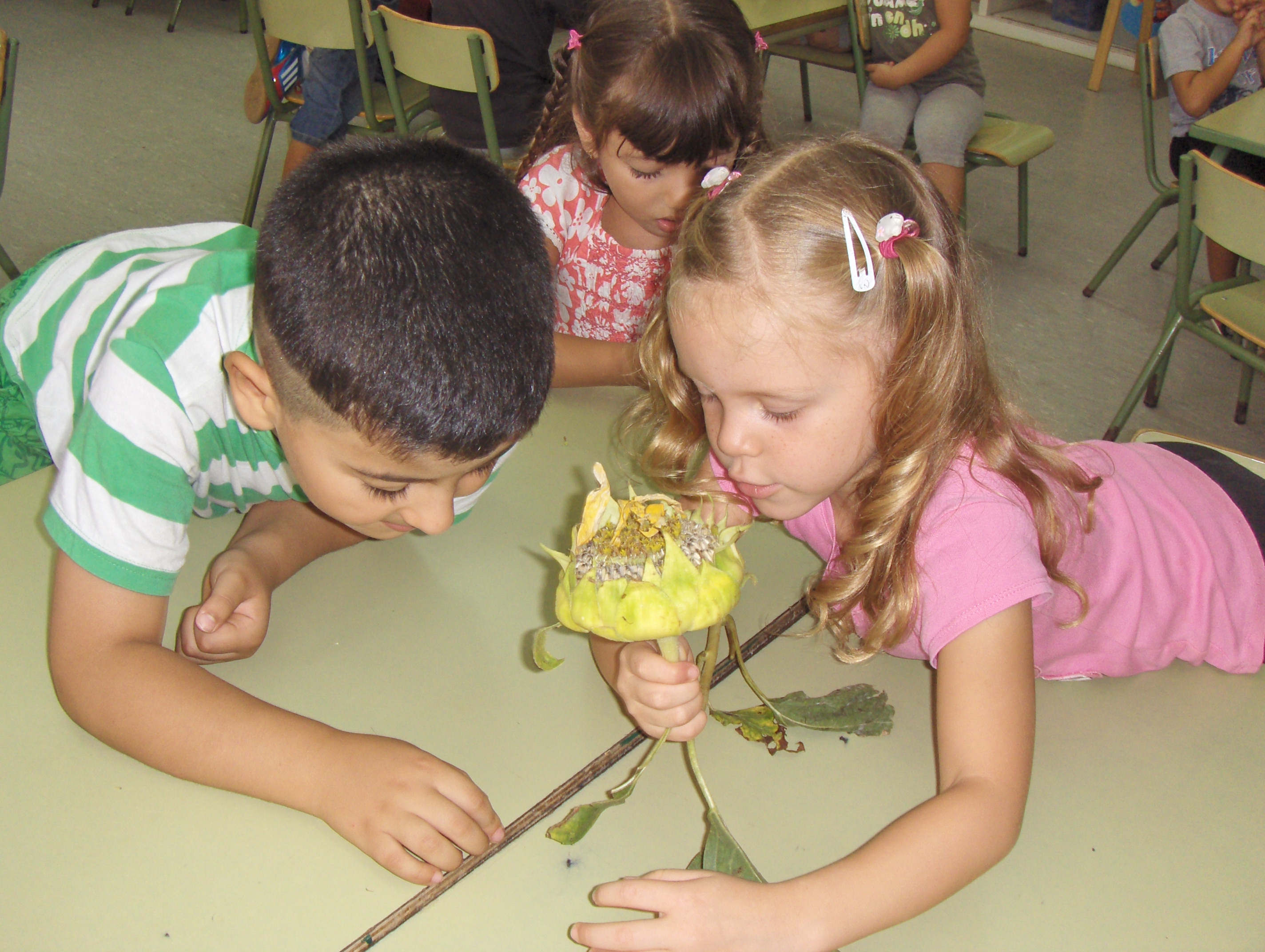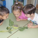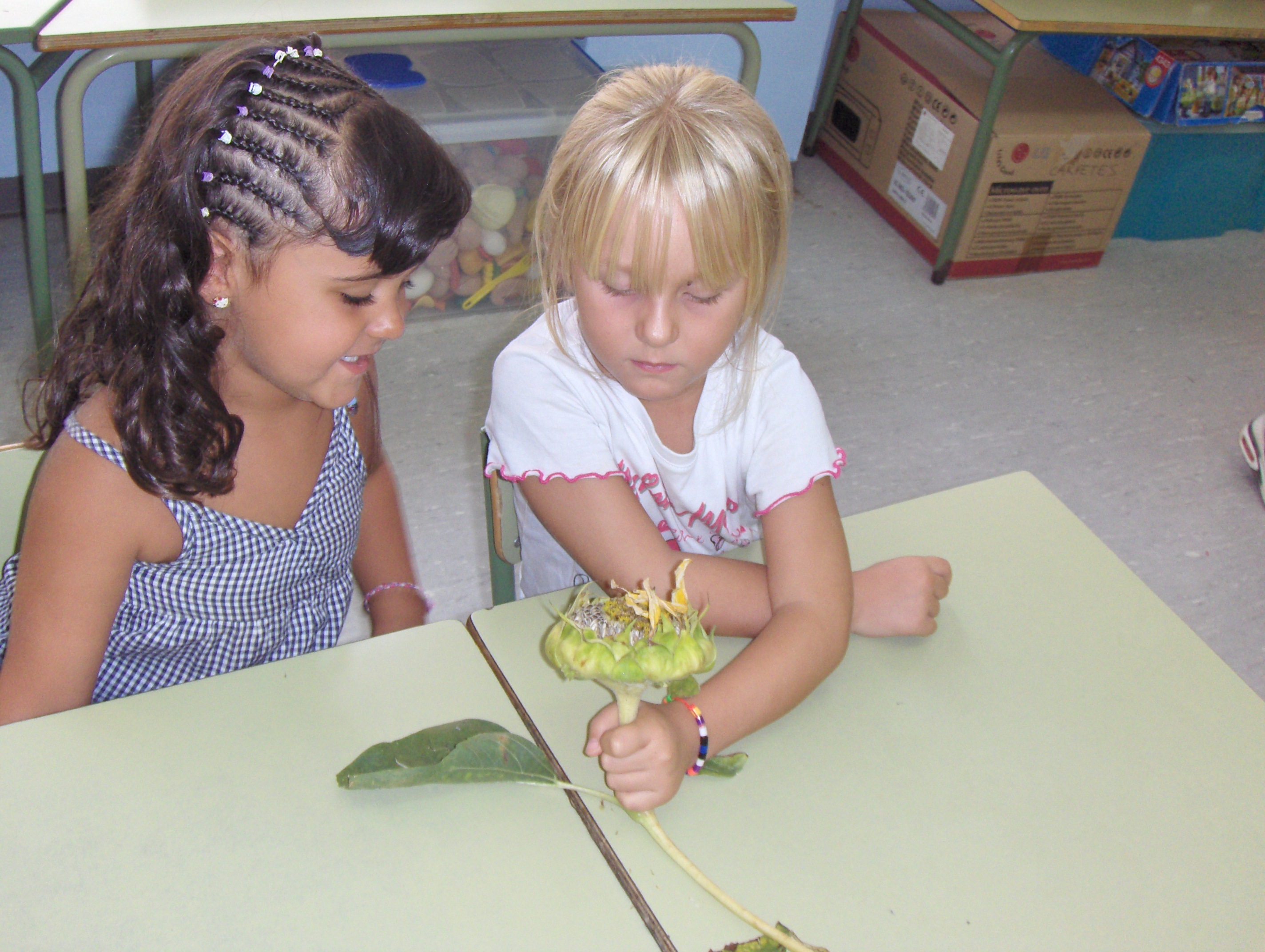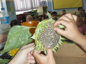Ens han portat a la classe un girasols d’un hort i els hem observat, els hem tocat, olorat i…