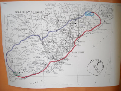 El dijous vam fer un full d’un mapa i vam assenyalar Sant Pere de Ribes i també Can Montcau. Vam trobar dos camins per anar a Can Montcau.
