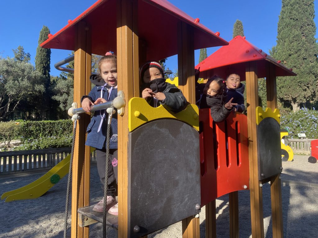 Allà vam esmorzar i després vam anar a donar una volta pel parc. Vam veure els arbres , les fulles, els horts, i el Palauet de Can Buxeres. Després vam estar jugant a un parc de fusta.