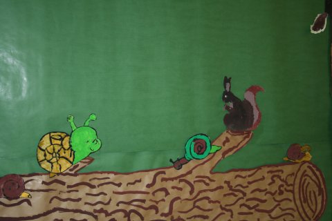 Ens van fer unes línies de color blau a les galtes per diferenciar-nos dels alumnes de cicle mitjà que els havien pintat les galtes de color taronja.