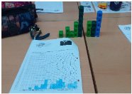 Els nens i nenes de 4t de l’escola Lluçanès van practicar la representació de productes en forma de rectangle jugant amb els daus de la maleta. Cada parella…