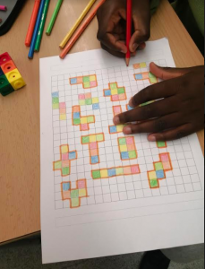 A 6è hem treballat les potències quadrades i cúbiques construint i dibuixant en paper quadriculat, les fraccions i també els hexòminos.