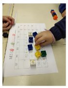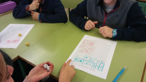 Els nens i nenes de 4t de l’escola Lluçanès van practicar la representació de productes en forma de rectangle jugant amb els daus de la maleta. Cada parella…