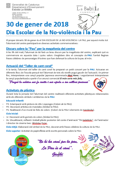 Celebrem el Dia escolar de la no-violència i la Pau!