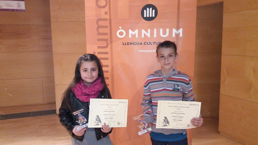 Entre els 18 alumnes guardonats, hi va haver dos alumnes de l’Escola La Bòbila: la Judith Alonso Escolà i el Lluc Falceto Fernández, que van aconseguir el segon i el tercer premi, respectivament, en la seva categoria, cicle inicial i cicle superior, amb les seves obres “L’aventura dels colors” i “El futur de cadascú”. Els dos alumnes van assistir a l’acte amb les seves famílies i les seves tutores.