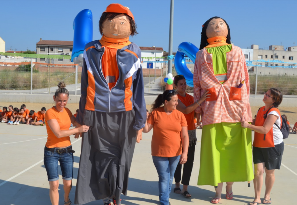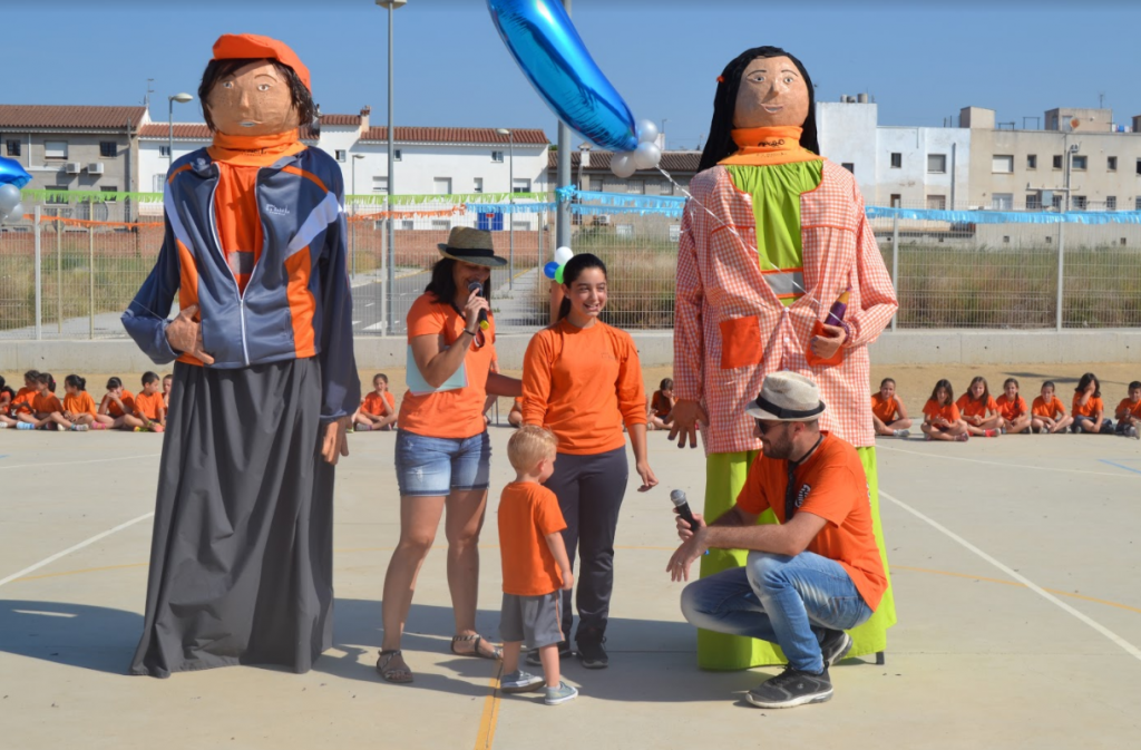 Seguidament a la pista poliesportiva vam convidar als gegants de la Bòbila, en BOB i la LILA que ens van ballar i animar mentre cantàvem tots plegats la nostra cançó, la cançó de la Bòbila.